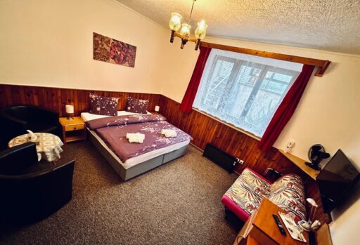 Rodinný penzion Chaloupka nabízí příjemné ubytování v 6ti dvou, tří a čtyřlůžkových pokojích, vybavených koupelnou ( sprcha, wc ) toaletními potřebami, LCD TV/SAT, telefonem, fénem, WIFI a 3 apartmány pro 3 – 5 osob.